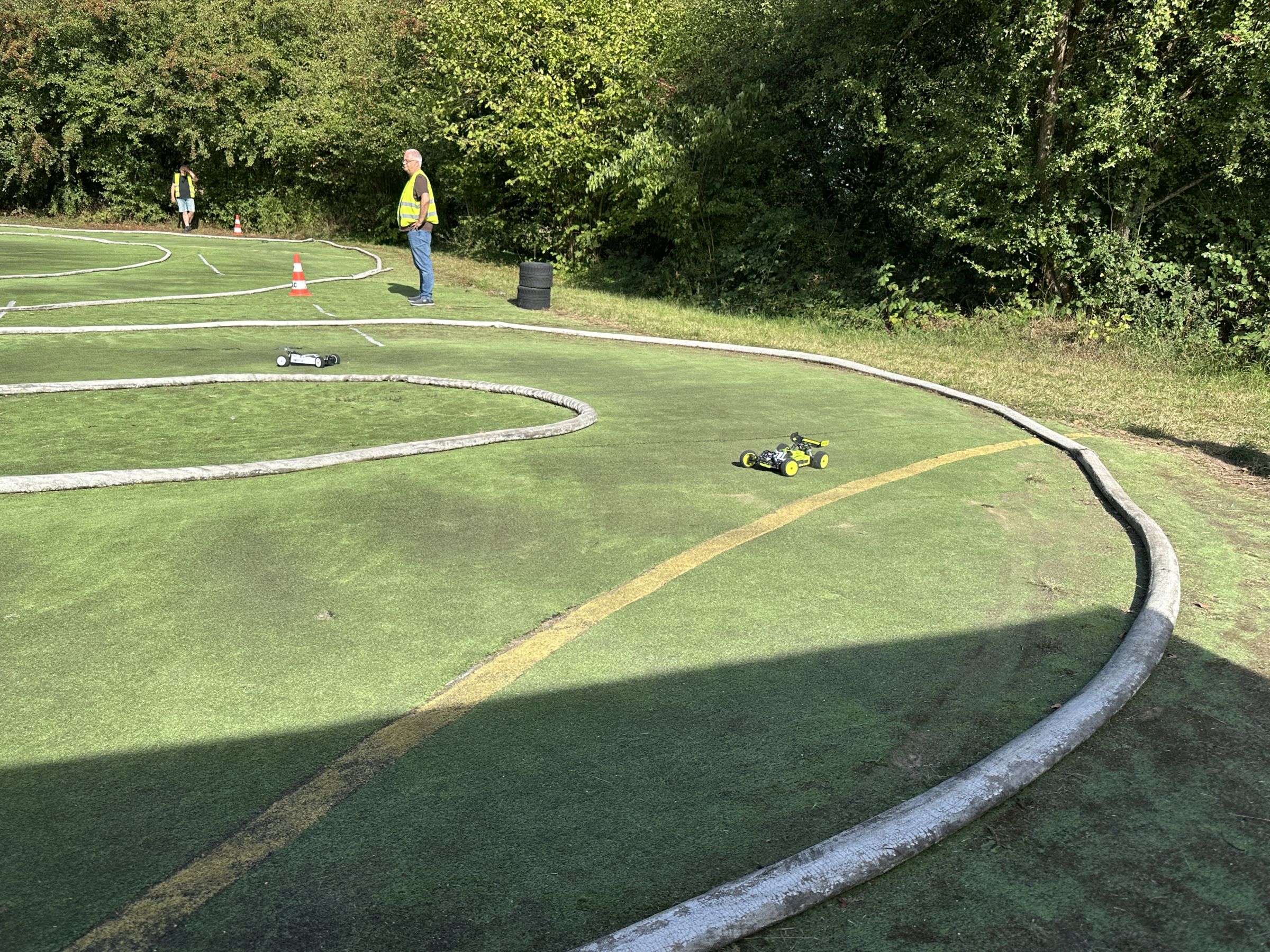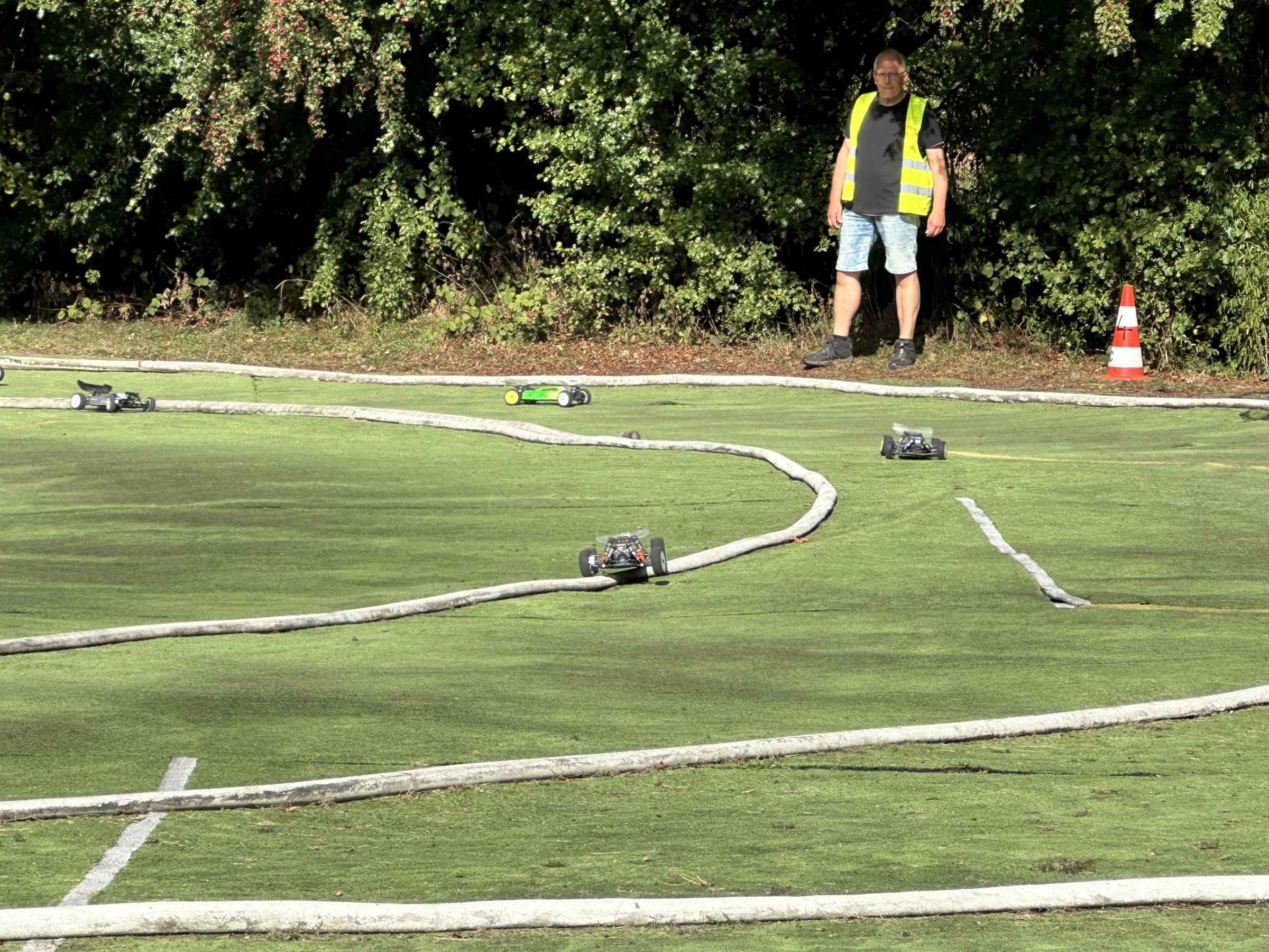 Viele Teilnehmer nutzen den zusätzlichen Trainingstag um nochmals die warmen Sonnenstrahlen draußen zu genießen. Neigt sich leider diese Saison draußen schon wieder langsam dem Ende zu. Am Sonntagmorgen konnten alle Teilnehmer dann nochmals knapp zwei Stunden frei trainieren bevor er um kurz vor zehn eine kurze Fahrerbesprechung gab und um 10 Uhr mit den Vorläufen gestartet werden konnte. Dieses Mal gab es ein schönes Fahrerfeld in 2WD Stock sowie 4WD Stock. Auch die Klasse BigShip war gut besucht. In der Klasse Rookie gab es nur einen Starter, daher entschied man sich ihn zusammen mit der Gastklasse Neo Fighter zusammen zu starten.