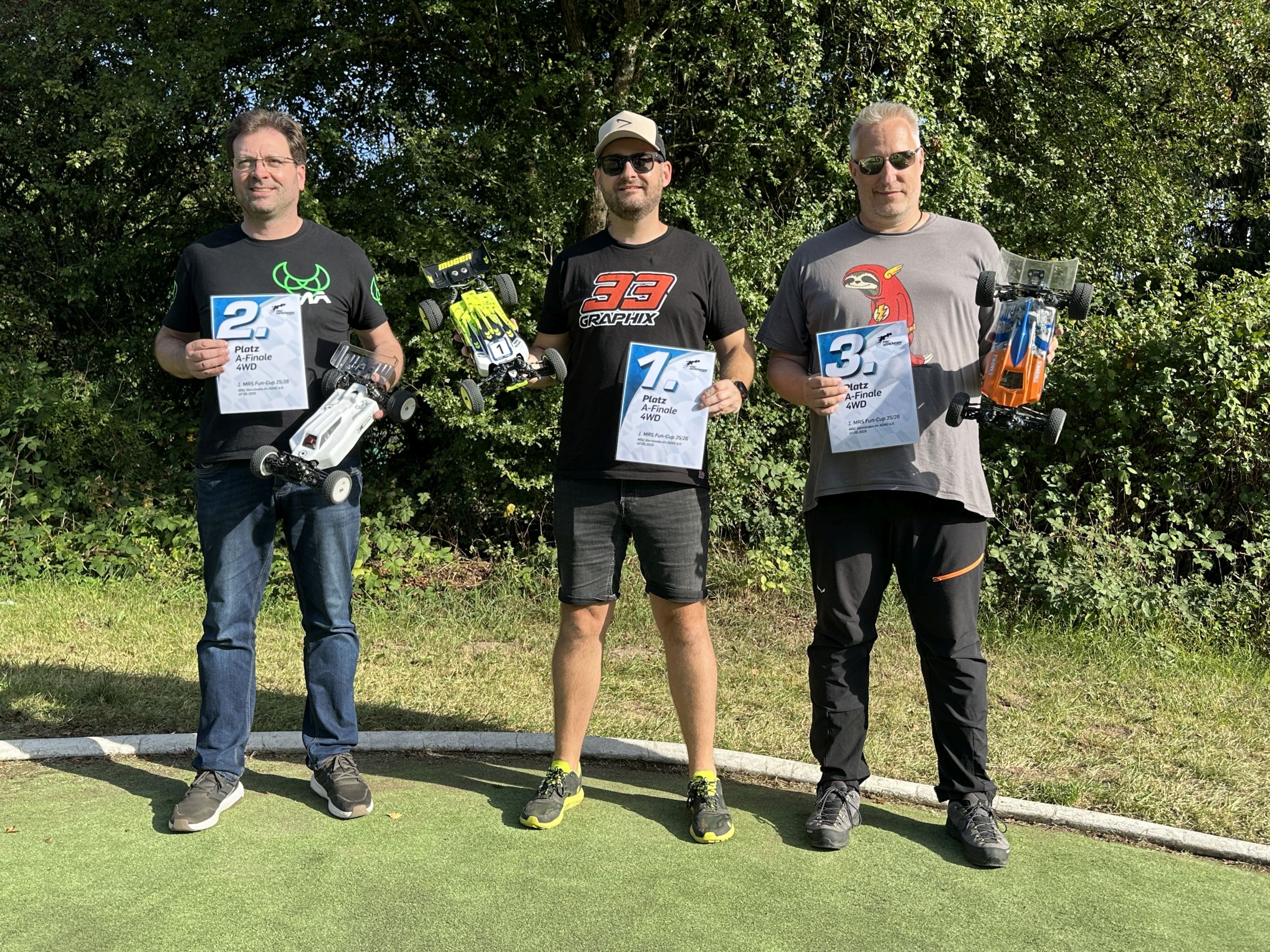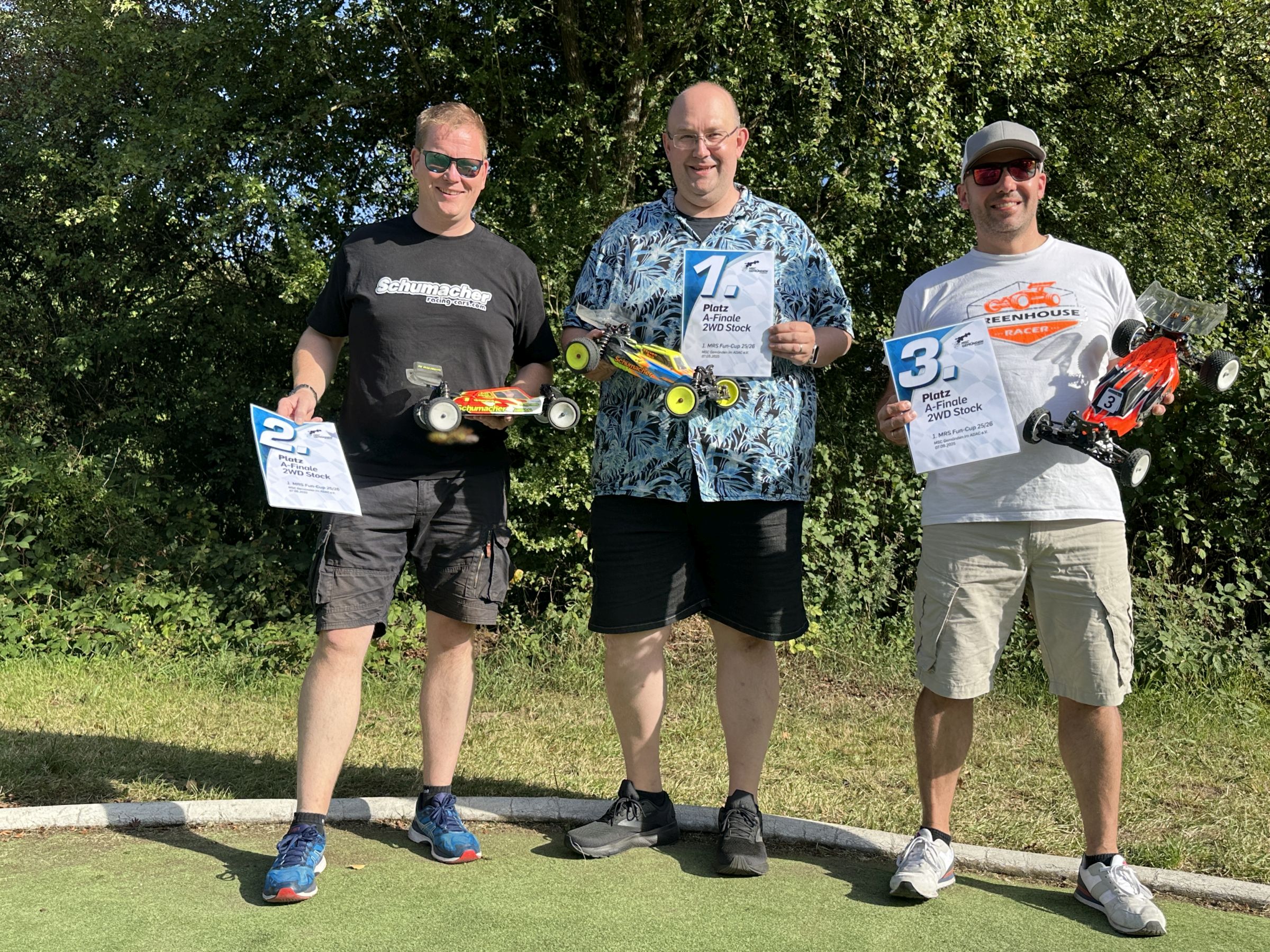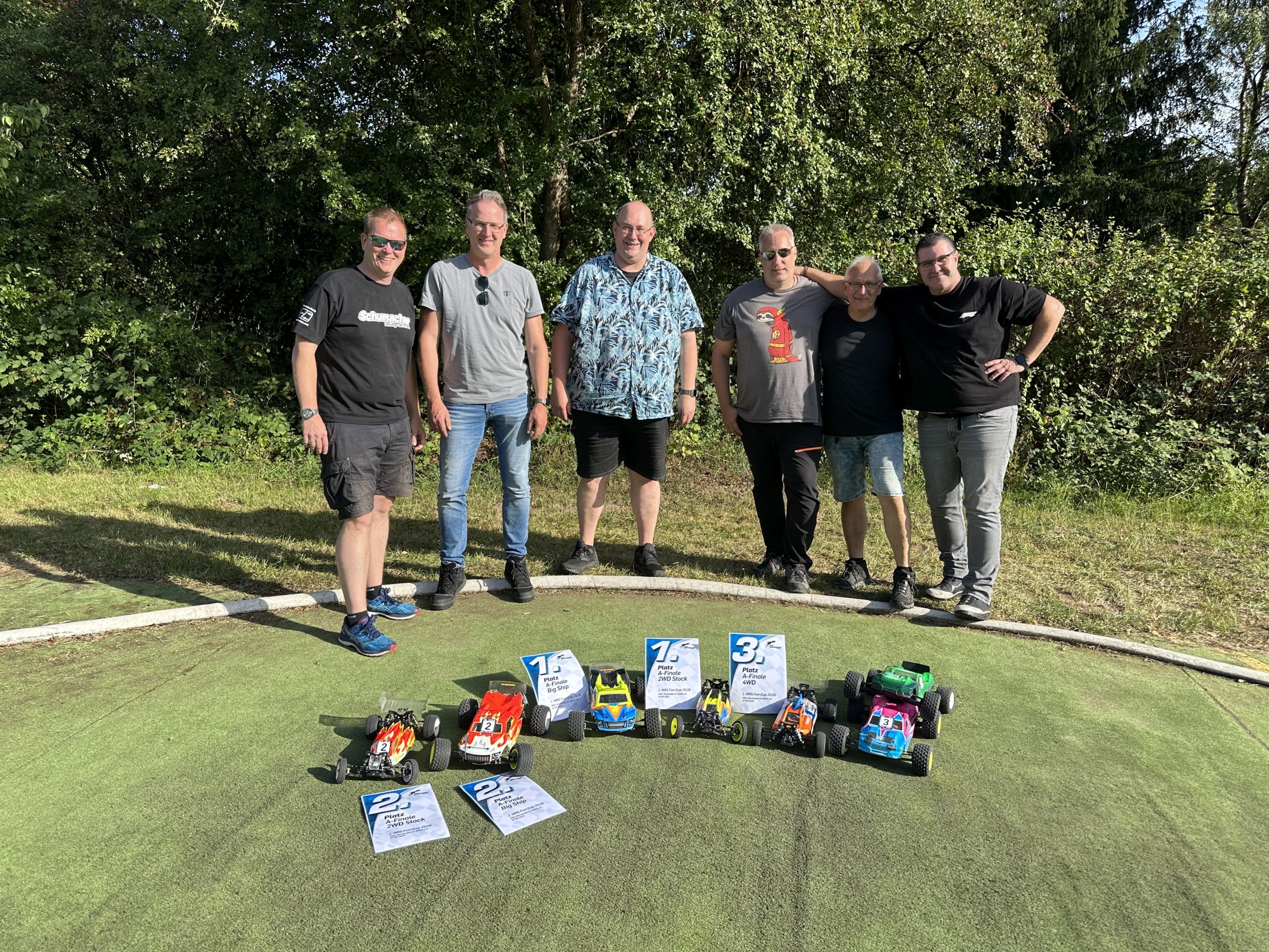 In der Klasse 2WD Stock sollte es noch etwas spannender werden. Die drei erstplatzierten aus den Vorläufen tauschten immer mal wieder die Positionen durch kleinere Fehler. Schlussendlich konnte sich aber auch hier Steven Reis vor dem Vorjahressieger Sven Schrader durchsetzen. Peter Woznik folgte auf Platzt 3, wurde aber im letzten Finallauf durch einen technischen Defekt 2 Runden vor Schluss eingebremst, sonst wäre es evt. noch mal richtig eng geworden.