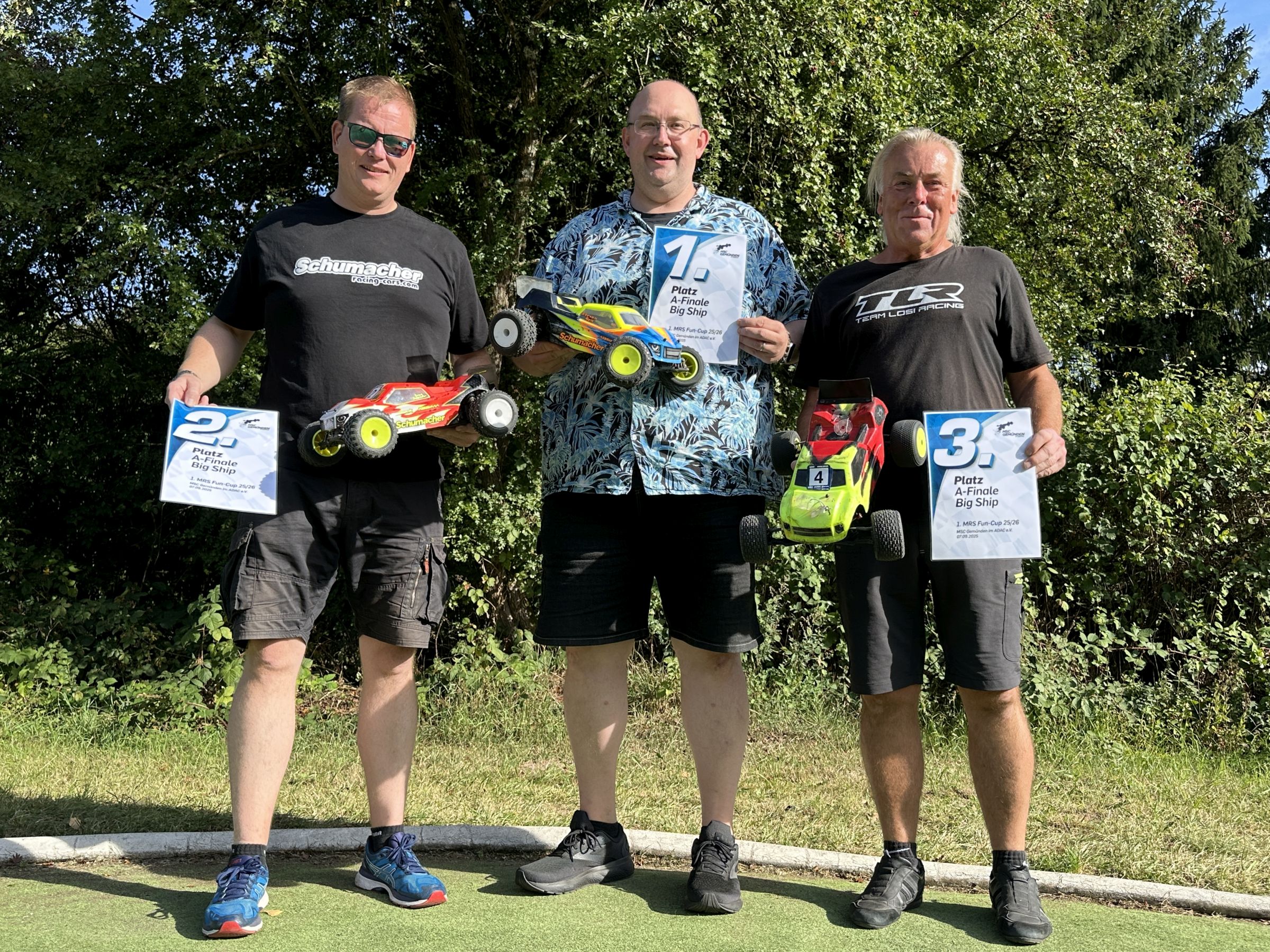 Am Ende gab es in BigShip ein Kopf an Kopf Rennen zwischen Steven Reis und Sven Schrader. Letztlich konnte Steven einen kühlen Kopf behalten und sich vor Sven den ersten Platz sichern. Zu viele kleine Fehler reichten für Sven letztlich nur für Platz 2. Gefolgt von Rudi Nath mit seinem TLR.